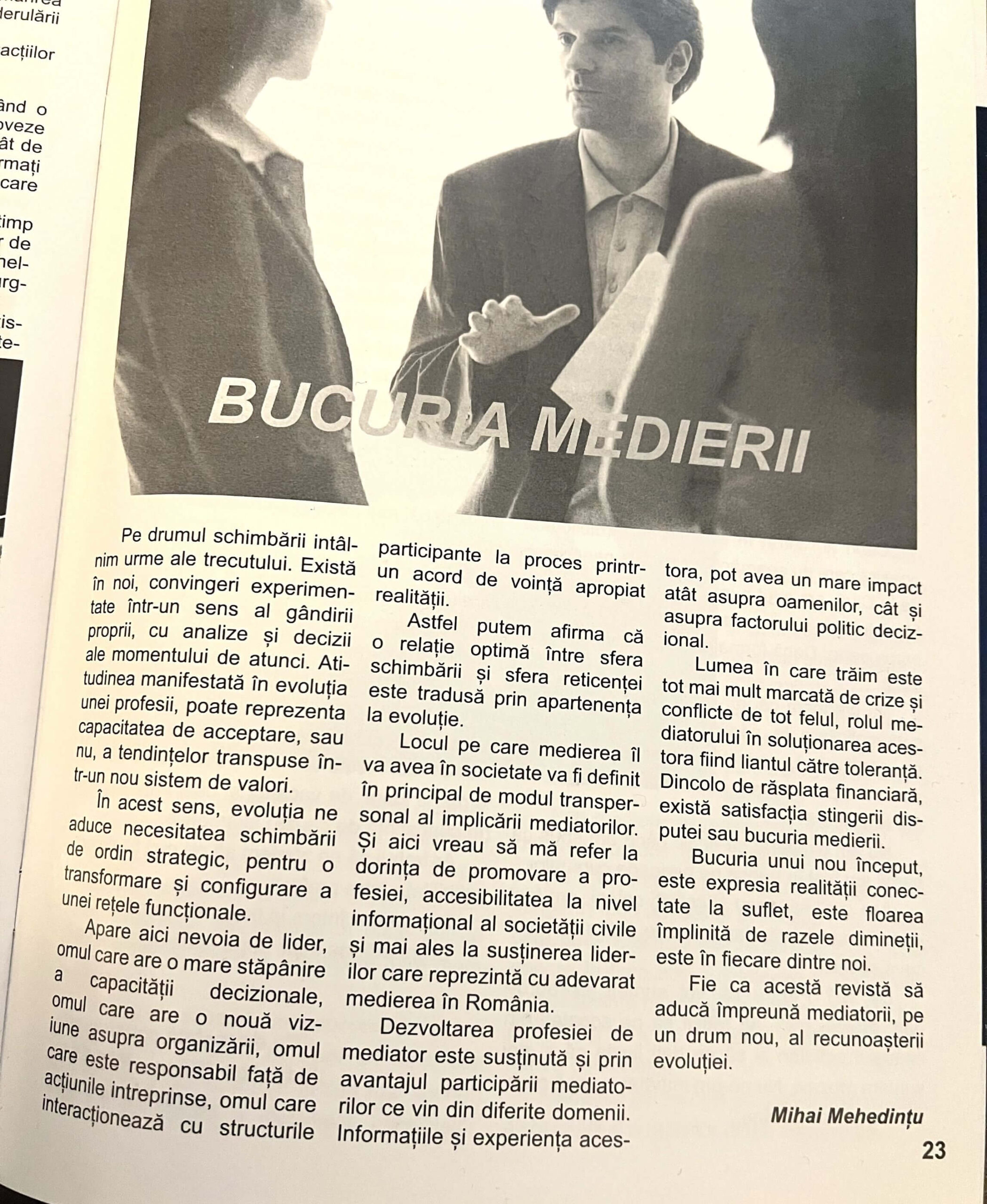 În toamna acelui an am absolvit un curs de mediator,(fără să practic această profesie) atras fiind de esența medierii în sine aceea de a aduce în percepția oamenilor care...