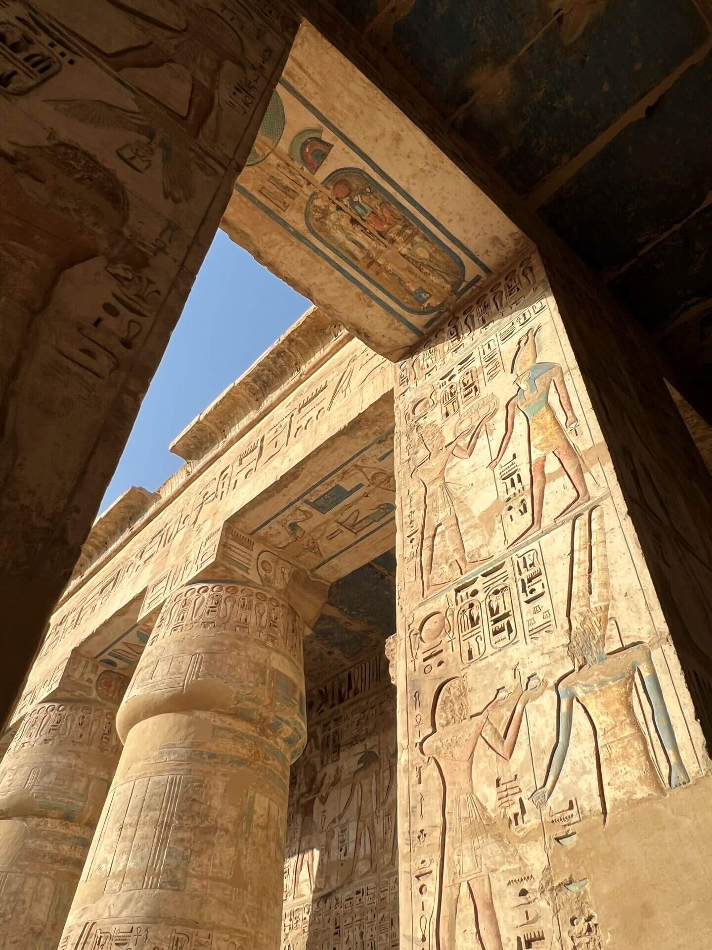 Templul lui Horus din Edfu, cu zidurile sale masive acoperite de hieroglife, întruchipează triumful ordinii asupra haosului, amintind de lupta eternă împotriva forțelor întunericului.